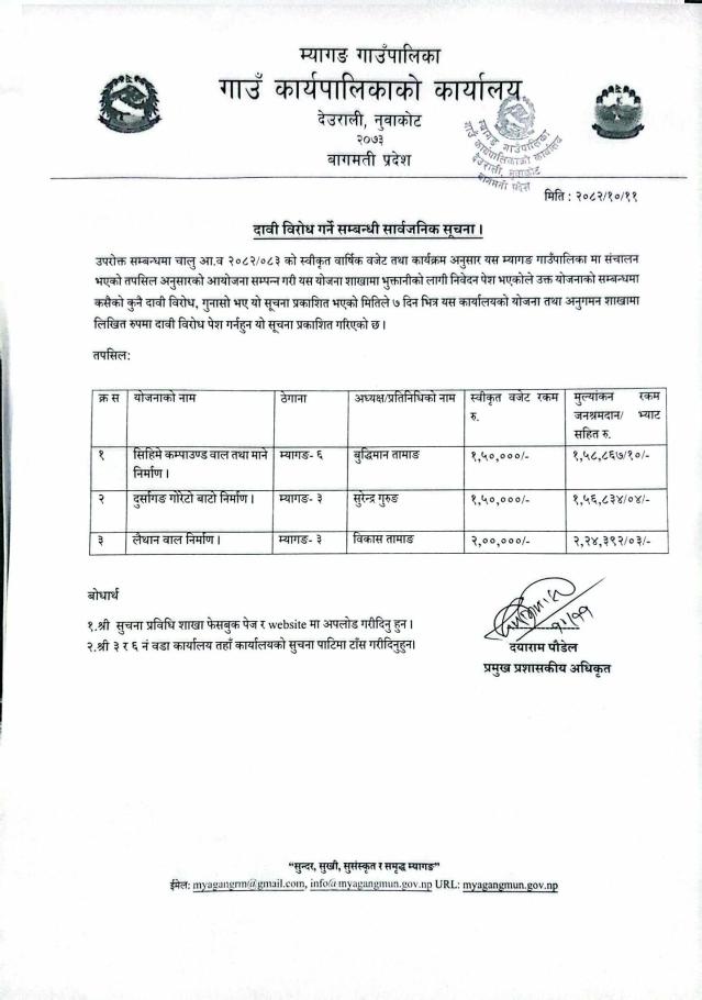 दावी बिरोध गर्ने सम्बन्धि सार्वजनिक सूचना !