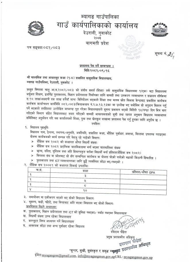 म्यागङ गाउँपालिकाको वार्षिक नीति तथा कार्यक्रम, २०८२/०८३