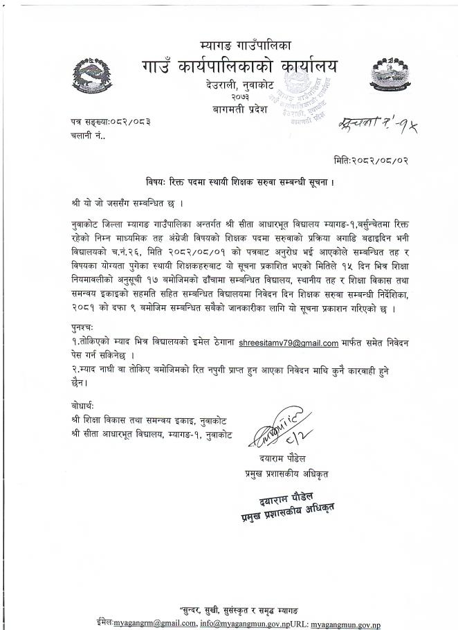 » रिक्त पदमा स्थायी शिक्षक सरुवा सम्बन्धी सूचना !