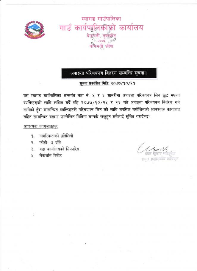 » आपङ्गता परिचयपत्र वितरण सम्बन्धी सूचना।