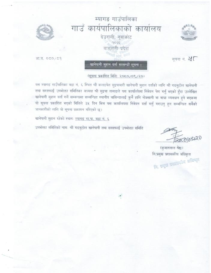 भुमांगो खानेपानी मुहान दर्ता सम्बन्धी सूचना !