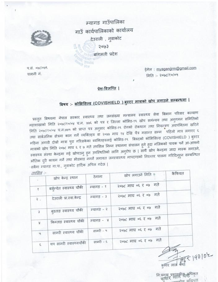 » कोभिडशिल्ड (COVID-SHIELD) बुस्टर मात्राको खोप लगाउने सम्बन्धमा।