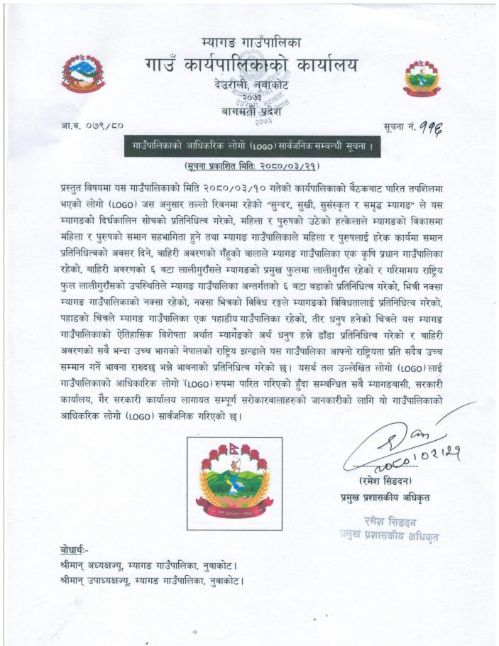 » गाउँपालिकाको आधिकरिक लोगो (LOGO) सार्वजनिक गरिएको बारे।
