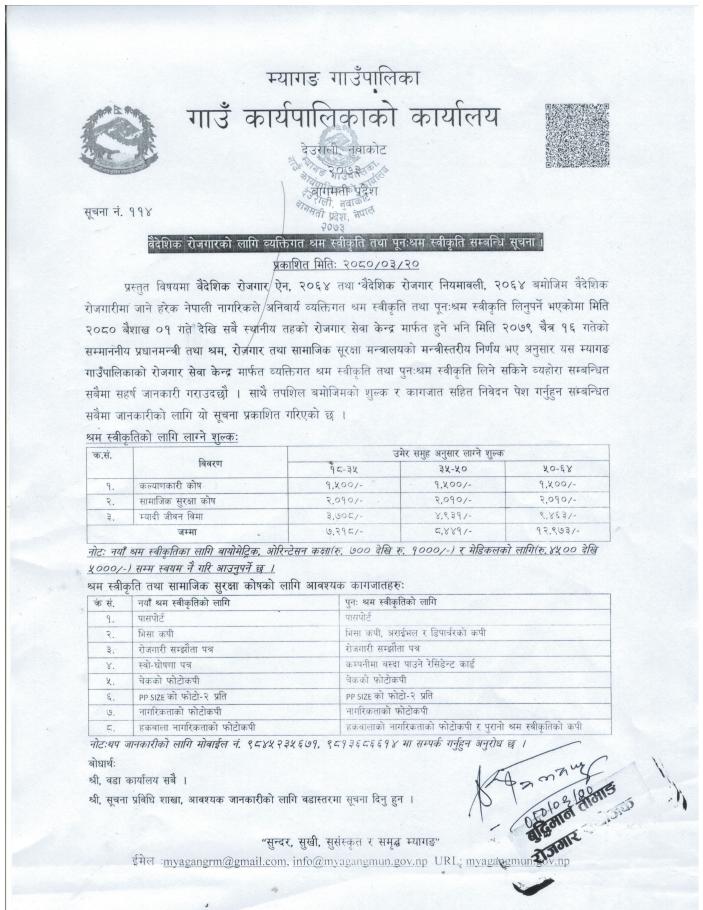 » बैदेशिक रोजगारको लागि व्यक्तिगत श्रम स्वीकृति तथा पुन: श्रम स्वीकृति सम्बन्धी सूचना!