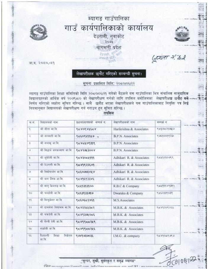 लेखापरीक्षक छनौट गरिएको सम्बन्धी सूचना !