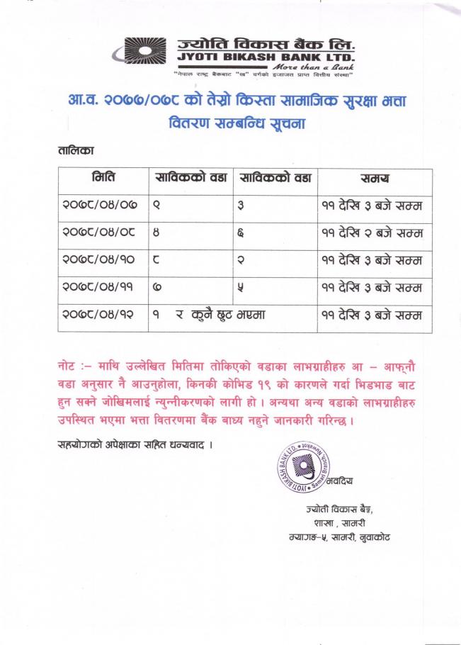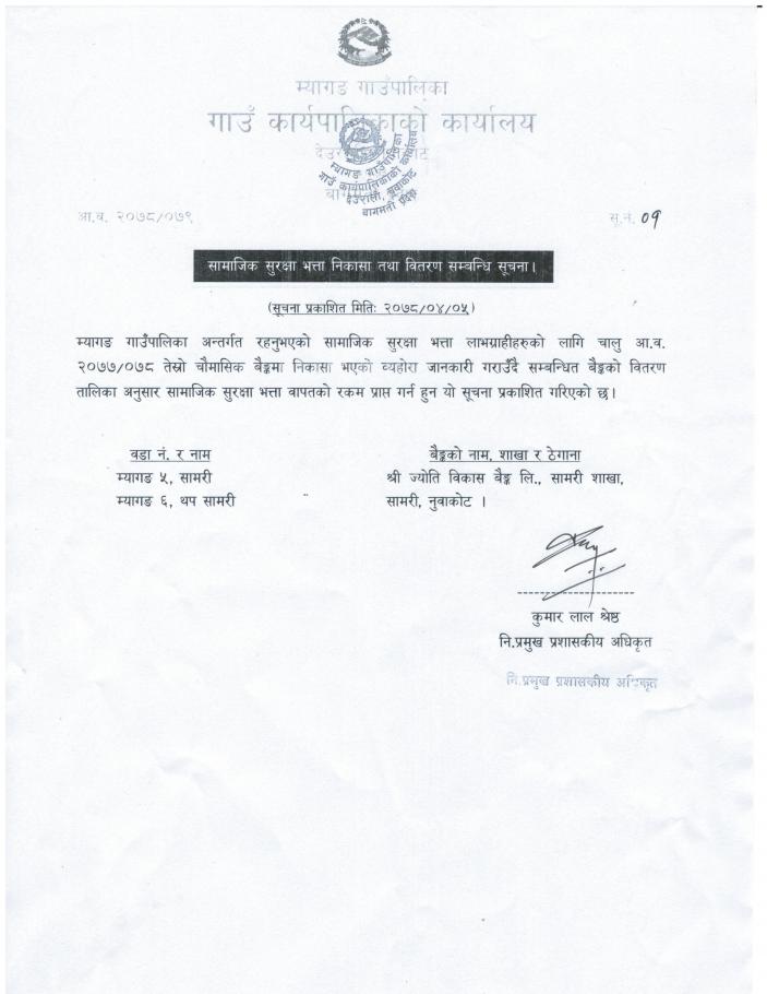 सामाजिक सुरक्षा भत्ता निकासा तथा वितरण सम्बन्धी सूचना!
